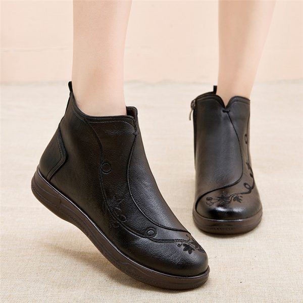 Winter leather mother cotton shoes soft bottom middle-aged female boots plus velvet warm flat-bottomed Non-slip ankle snow boots