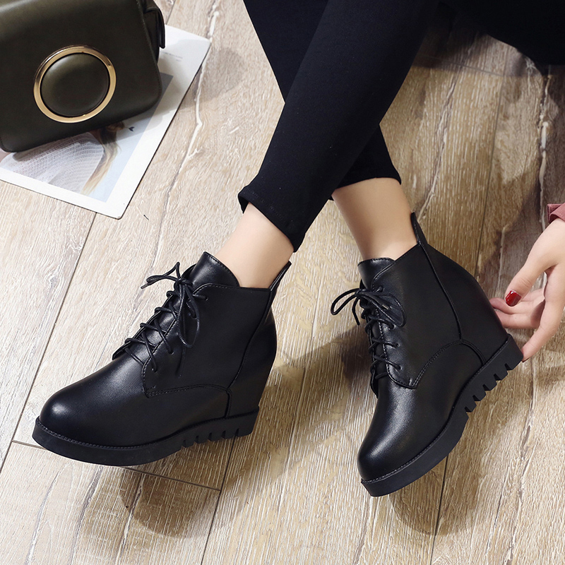 women’s short boots autumn and winter new lace-up leather shoes height increasing thick bottom Non-slip women’s boots