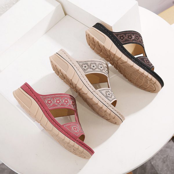 Summer women’s slippers with slope with large size middle-aged and elderly shoes non-slip fashion soft bottom women’s sandals
