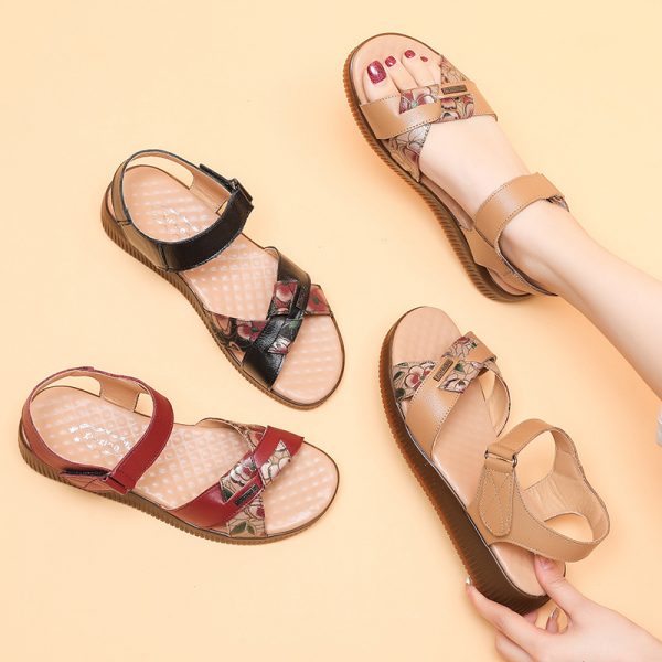 Summer Women’s Sandals Genuine Leather Casual Flat Mother Sandals Women’s Soft Bottom Flat With Summer Ladies Beach Shoes