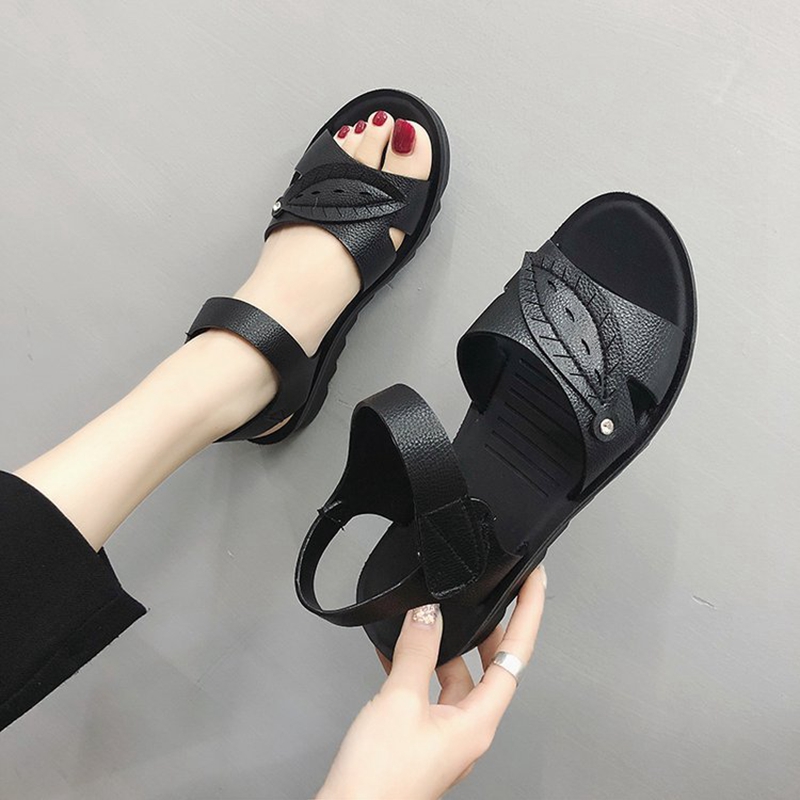 Summer leather soft-soled beach women’s slippers lightweight and comfortable mid-heel wedges non-slip open-toe women’s sandals