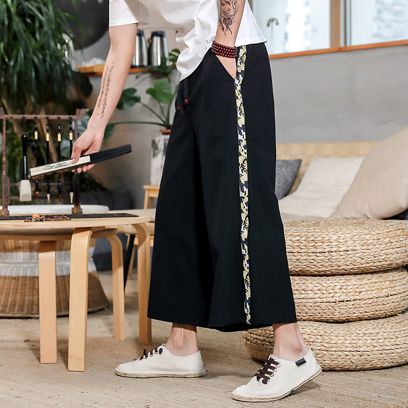Summer Mens Wide Leg Crotch Pants Male Casual Harem Pants New Fashion Cotton Linen Men Jogging Pants Large Size M-5XL