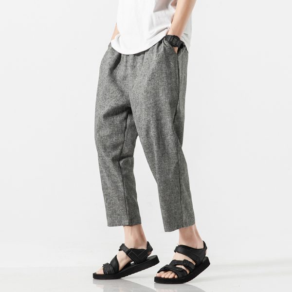 New Men Summer Cotton Linen Harem Pants Fashion Baggy Casual Loose Cropped Pants Drawstring Male Trousers Streetwear