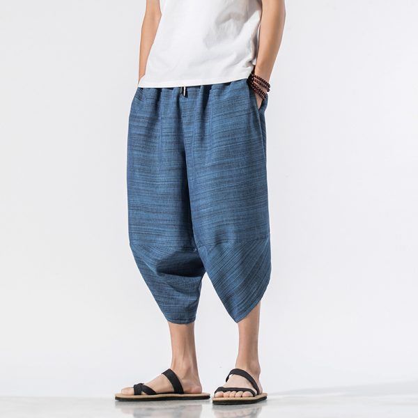 Summer Mens Wide Leg Crotch Pants Male Casual Harem Pants New Fashion Cotton Linen Men Jogging Pants Large Size M-5XL