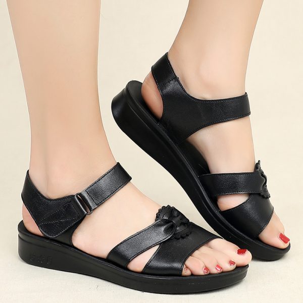 new fashion women sandals summer shoes woman leather footwear soft flat sandals female comfortable old shoes mother sandals